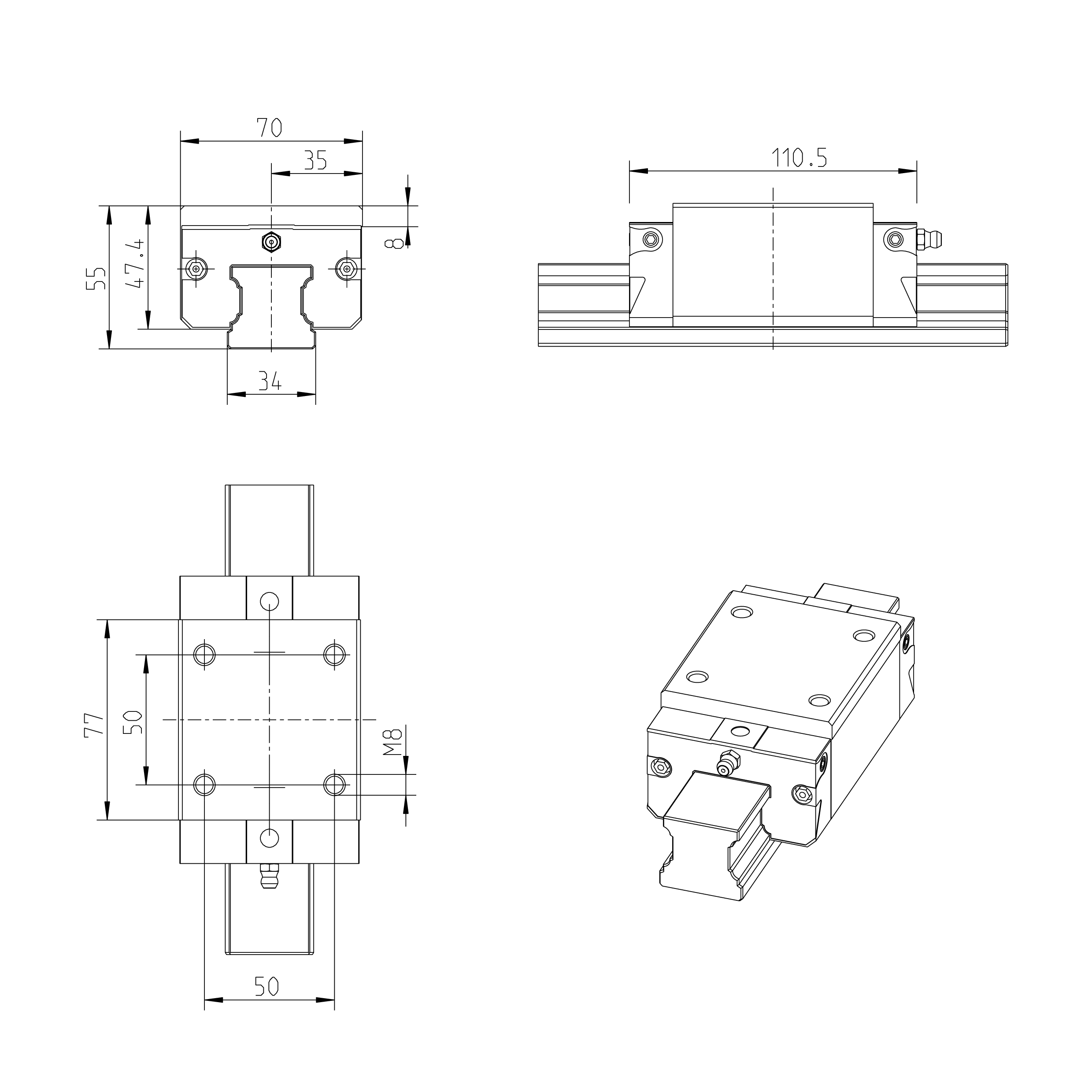 Шырыня напрамляючага блока [мм] |