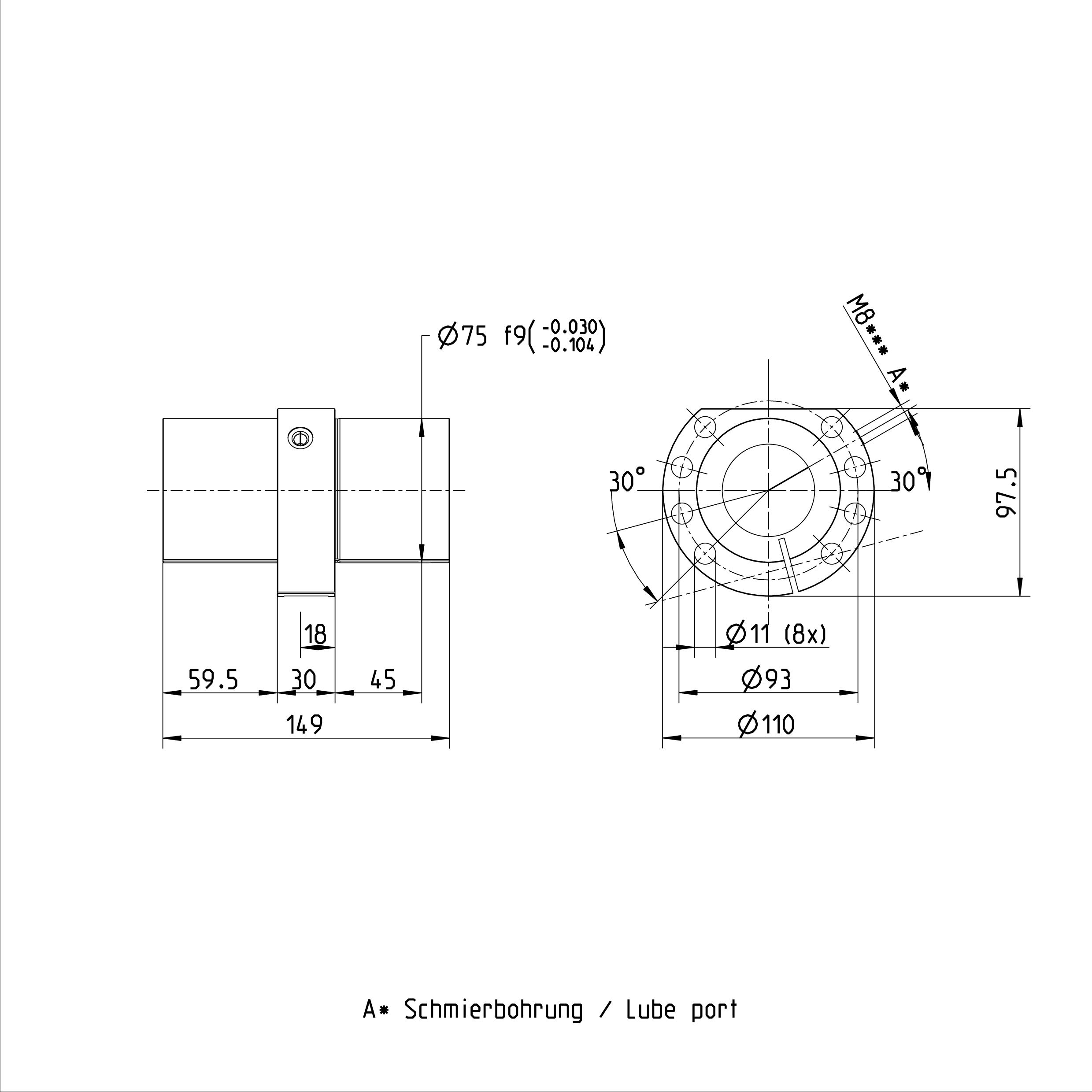 R151259055 Rexroth Standard Series Nut, SEM-E-C Adjustable Zero Backlash, Single Nut, Standard Seal, Tolerance Grades T3, T5, T7, Adjustable Preload