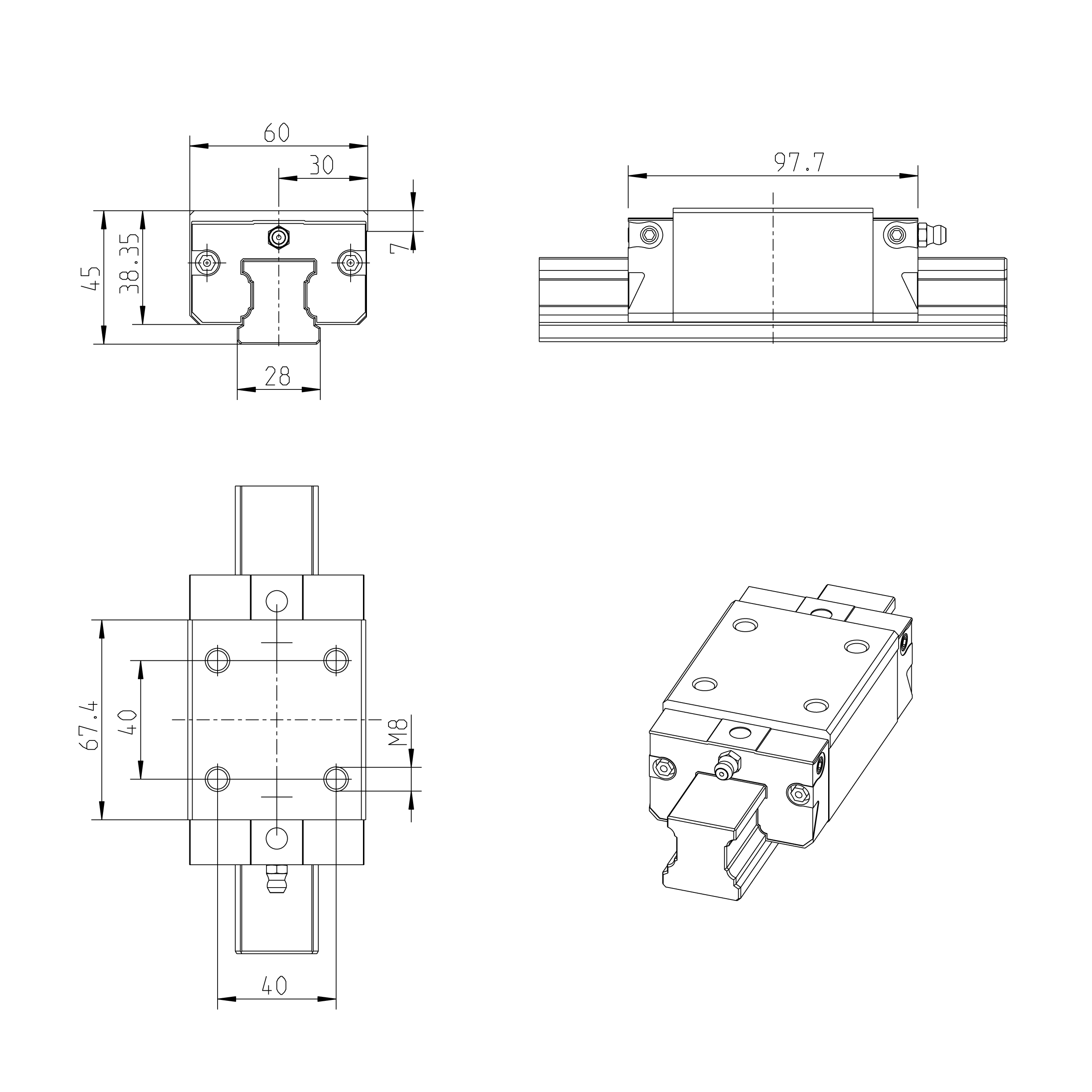 Các điểm gá trên đỉnh có thể được bắt bu-lông từ phía trên và phía dưới của con trượt bi